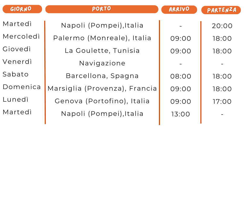 Periodo itinerario: Da Dicembre 2025 ad Aprile 2026