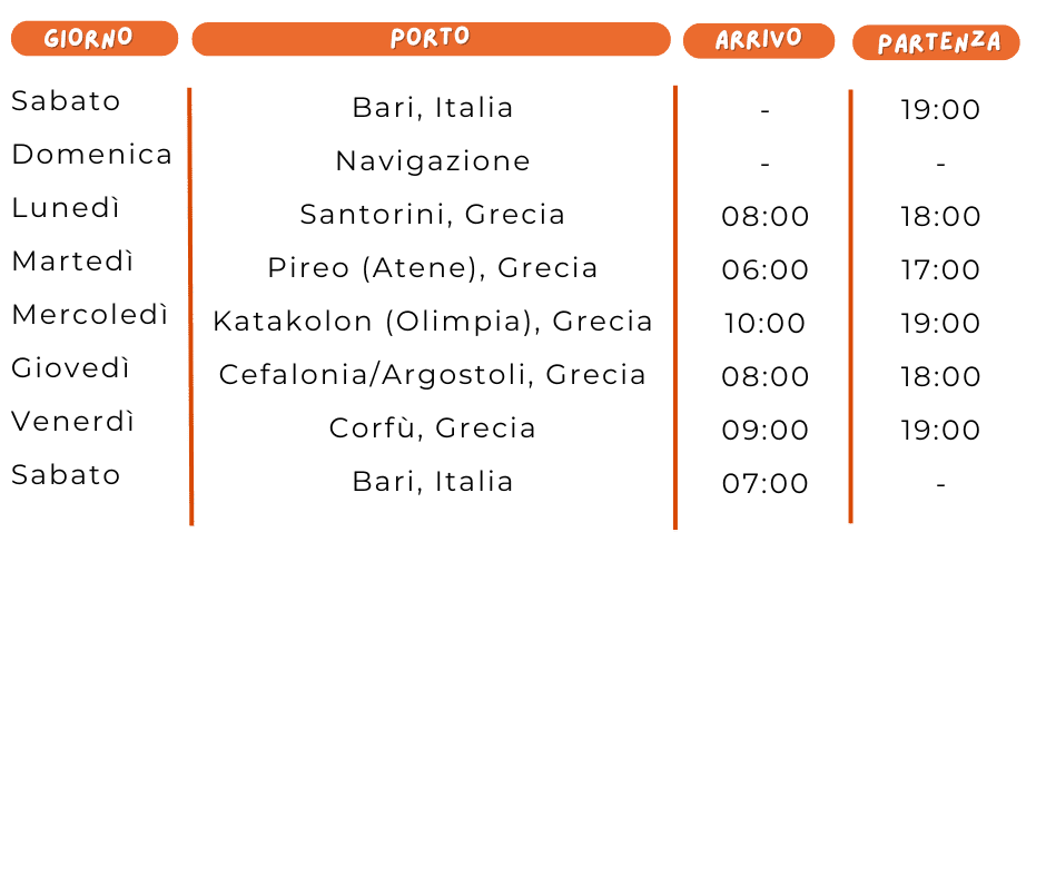 Periodo itinerario: Da Dicembre 2025 ad Aprile 2026